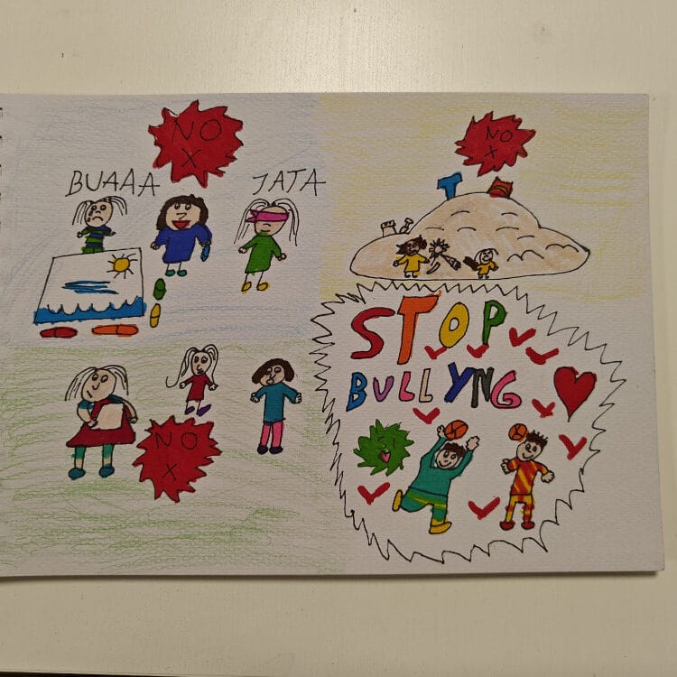 Tu hij@ podrá utilizar la técnica artística de pintura que más le guste para crear una obra que transmita el importante mensaje de la canción. Podéis aprovechar esta experiencia para pasarlo bien y aprender nuevas herramientas para combatir el Bullying, transmitiendo un mensaje positivo. ¡Dad rienda suelta a vuestra imaginación!